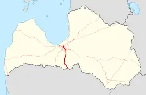 The A7 is a national road in Latvia connecting Riga to the Lithuanian border (Grenctāle), through Bauska. The road is also known in Latvia as the Bauska Highway. The A7 is part of European route E67 (also known as the Via Baltica) and the European TEN-T road network. The road becomes the Lithuanian A10 at the border. The length of the A7 in Latvian territory is 86 kilometers. Currently the A7 has 2x2 lanes only within the territory of Riga, other parts have 1x2 lanes. The current speed limit is 90 km/h except within municipalities. In period of 2005 - 2006, the A7 was reconstructed from the 25th until the 43rd kilometer and from the 67th until the 85th kilometer. A 2 kilometer stretch of the road was reconstructed in Iecava, and reconstruction of another 15 kilometer long stretch was finished in 2012. Construction of the Ķekava bypass is planned to begin in 2017. The bypass will be built to expressway or motorway standards. The average traffic (AADT) on the A7 during 2016 was 14,599 cars per day.