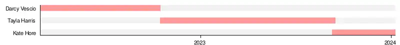 | Richmond | Katie Brennan | 50 | 39 | 2020–present | [29] |