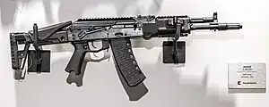 The AK-205 is a carbine chambered in 5.45×39mm. The AK-205 is a modernized version of the AK-105, which in turn is a shortened carbine version of the AK-74M. The AK-205 was originally known as AK-105M before being renamed ''AK-205'' in 2018. The AK 200 series AK-205, AK-202 and AK-204 are very similar in design, the only differences being the chambering, barrel length and magazine type.[1]