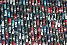 A [For 100 Cars] was performed by a group of 100 cars.[2] This arrangement was called "the world's largest synth orchestra" by Mixmag and Vice.[13][14] The full performance of the piece lasted for around 27–28 minutes.[6][15] Each performer was given a coloured score to read which dictated when to play the synthesiser, as well as the volume and octave (from A1 to A8).[2][10]: 179 [12]
