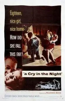 A Cry in the Night was released on August 31, 1956, at the Palace Theatre in New York City.[19] The film was released on DVD on July 26, 2016 by Warner Home Video on the Warner Archive Collection.[20]