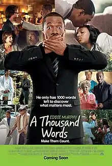 A Thousand Words is a 2012 American fantasy comedy-drama film directed and co-produced by Brian Robbins from a script by Steve Koren, co-produced by Nicolas Cage, and starring Eddie Murphy. It was released in theaters on March 9, 2012, four years after it was filmed. Critics panned the film as formulaic and outdated, and for miscasting Eddie Murphy in a mostly silent role. It is currently one of a small number of films with a 0% rating on review aggregator Rotten Tomatoes. It was also a box office bomb, having grossed just $22 million worldwide on a $40 million budget. As of 2023, it is the last film directed by Robbins, and it was Murphy's last film for four years, until he appeared in the 2016 independent film Mr. Church.