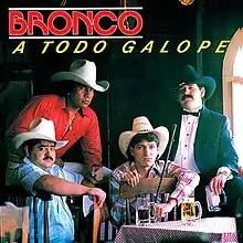 A Todo Galope (Eng.: "To Full Gallop") is the ninth studio album released by Bronco with Fonovisa Records in the fall of 1989.[2] The initial release included 12 songs.[3] Select tracks were written by band frontman José Guadalupe Esparza while others were written by professional songwriters such as Bebu Silvetti and Manuel Alejandro. Homero Hernández produced the album.[4]
