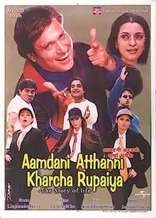 Aamdani Atthanni Kharcha Rupaiya (lit.'Income is 50 paise and expenses are a whole rupee'; cont. Expenses are greater than wages) sometimes abbreviated as AAKR is a 2001 Indian Hindi-language comedy film directed by K. Raghavendra Rao starring Govinda, Juhi Chawla, Tabu and Johnny Lever. This was the remake of Tamil film Viralukketha Veekkam directed by V. Sekhar. The film was an below average grosser at box office.[1][2][3]