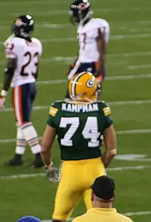Aaron Allan Kampman (/ˈkæmpmən/; born November 30, 1979) is an American former professional football player who was a defensive end for ten seasons in the National Football League (NFL). He played college football for the Iowa Hawkeyes. He was selected by Green Bay Packers in the fifth round of the 2002 NFL Draft, and also played for the Jacksonville Jaguars.