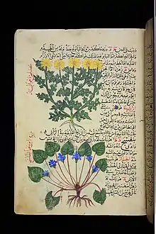 Abū Jaʿfar al-Ghāfiqī (uncertain birth and death dates),[1] was an 11th-century Andalusian Arab botanist, pharmacologist, physician and scholar from Ghafiq near Cordoba in the southern Iberian peninsula called al-Andalus, a region of mixed cultures, religions, and languages. In modern literature, he is commonly mistakenly identified as a 12th-century scholar who died around 1165. Nonetheless, the oldest copy of his only known work is dated 1111, implying that he lived at least part of his life in the 11th century.[2] He was responsible for the collating and creating of 'Kitāb fī l-adwiya al-mufrada' (“Book of simple drugs”), a remarkable compendium of some 400 hand-drawn and coloured images of plants and animals, popularly known as the “Herbal of al-Ghafiqi". The Herbal draws on ancient Greek sources like Dioscorides and Galen and more than thirty other works from India and the Hellenistic and Islamic worlds.[3][4]