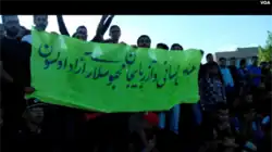 On 29 August 2015, a football match was held in Ardabil at Takhti Stadium between Ardabil's "Shahrdari" team and Isfahan's "Giti Pasand" club. Ardabilly fans who came to the game chanted "May our country prosper – may Lisani be free" and demanded the freedom of Abbas Lisani.[183] On 10 September 2015, Mustafa Parvin, Saleh Pichganli, Tovhid Amir Amini,[184] Murtaza Parvin, and Meysam Colani were arrested by Iranian security forces during a football match at Takhti Stadium in Ardabil. The reason for this was that they raised placards with expressions supporting Abbas Lisani and other political prisoners and chanted national slogans during the game at the stadium.[185] Each of them was sentenced to 3 months in prison and 30 lashes.[186] According to the court's decision, 30 lashes should be given on the day of the end of the 3-month prison term, the sentence was carried out in the first days of the activists' entry.[187]