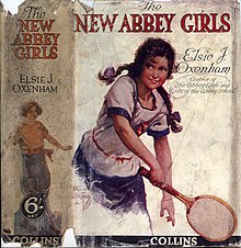 The Abbey Girls (1920) is the second title of the series, and tells of two red-headed cousins, Joan and Joy Shirley, and how, in different ways, they manage to get places at Miss Macey's School. These two characters are the original 'Abbey Girls' and the series continues with stories about them and the friends they make throughout, not only their schooldays, but also their adult lives. An early friend, Jen Robins,[2] soon becomes a major character, and others, Jandy Mac,[3] Rosamund and Maidlin,[4] can all claim the sobriquet 'Abbey Girl'. By the end of the series[5] these six are all married with children, and the adventures of the daughters of Joan, Joy, Jandy and Jen, at the same school, have come to the fore.