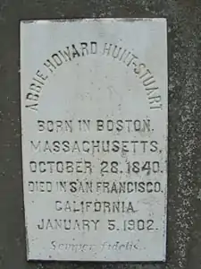 Abbie Howard Hunt Stuart died on January 7, 1902, while on a trip to California. Her funeral was held at the Olympia Woman's Club on January 11, 1902.