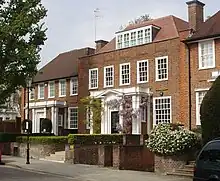 Abbortsbury Road has existed since 1905.[1] The southern part of Abbotsbury Road, named after a Dorset estate belonging to the Earl of Ilchester, was created at the same time as Oakwood Court.[2] Only a few houses were built before World War II (odd Nos 3–9 in c.1924; even Nos 8–10 and 24–28 in the 1930s). During the 1950s and 1960s, there was extensive building in the street. All the houses and flats on the west side of Abbotsbury Road to the north of Oakwood Court (odd Nos 17–137), in the adjoining Abbotsbury Close (Nos 1–66), and Abbotsbury House (a 10-storey block of flats), were built during this period by Wates Limited, designed by Stone, Toms and Partners.[2]