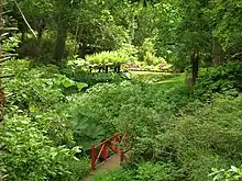 The garden originates in 1765.[3] In the late eighteenth century, the Fox-Strangeways family (the Earls of Ilchester) built a new house on the location; when it was burnt down in 1913, they returned to their family seat at Melbury House, but the walled garden was maintained—it remains in the ownership of the family.[4] Since then, particularly after the contributions of the 4th Earl of Ilchester,[4] the gardens have developed into an 8 hectares (20 acres) site with exotic plants, many of which were newly discovered species when they were first introduced. There are formal and informal gardens, with woodland walks and walled gardens; in addition, the gardens also contain certain "zones" that exhibit plants from different geographical areas.[3]