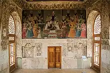 ![]() Mural by Abdallah Khan in the Soleymaniyeh Palace in Karaj, depicting Agha Mohammad Khan Qajar and his court. Dated 1813-14 | |