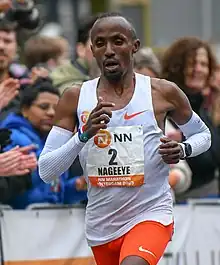 Abdi Nageeye (born 2 March 1989)[1] is a Somali-Dutch long-distance runner from the Netherlands. He won the silver medal in the marathon at the 2020 Tokyo Olympics. Nageeye placed third at the 2022 New York City Marathon.