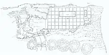 Design plan view that shows how the monument integrates with the surrounding landscape and that the original layout used tiles, now covered by timber decking