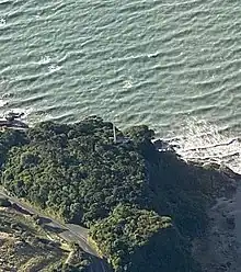 The site chosen for the monument was a bluff in Tarakohe that overlooks Ligar Bay and Tata Beach, on land donated by the adjacent Golden Bay Cement Company. As Bill Parry, the Minister of Internal Affairs, explained in his speech at the monument's unveiling, the site where Tasman came closest to land was "past Wainui" and too difficult to access.[17][lower-alpha 2]