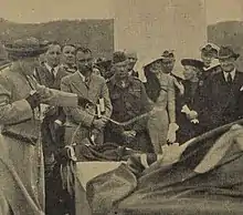 The unveiling ceremony was held on 18 December 1942. The Dutch delegation was present and the government was represented by Peter Fraser in his role as Prime Minister, Parry as Minister of Internal Affairs, and Jim Barclay as Minister of Lands. The unveiling was performed by Julia Skinner, the wife of local Motueka electorate MP Jerry Skinner (who himself was fighting in the North African campaign at the time). Eruera Tirikatene, MP for the Southern Maori electorate, led the Māori delegation. The chairman of directors of the Golden Bay Cement Company formally handed over the deed for the gifted land.[17] Prior to the event, the delegation had been hosted by the Takaka town board and the Takaka county council for a light lunch[27] and after the unveiling, the official delegation was hosted by the Golden Bay Cement Company for afternoon tea.[17] The delegation then travelled over Tākaka Hill and were welcomed by the mayor of Motueka, Walter Eginton, and the councillors.[28]