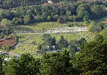 Aberfan Cemetery (Welsh: Mynwent Aberfan) is a cemetery near the village of Aberfan, Merthyr Tydfil. It is one of five cemeteries in Merthyr Tydfil County Borough, and is particularly well known for the graves of 144 victims of the Aberfan disaster in 1966, when a colliery coal tip collapsed and killed many people in the village of Aberfan.