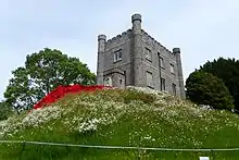 By the late 18th century, the ruins were starting to attract visitors seeking "picturesque" views, and walks were laid out within the castle walls.[3] In 1819, Henry Nevill, 2nd Earl of Abergavenny, had a hunting lodge constructed on top of the motte. Newman describes it "an unsympathetically utilitarian structure, enlivened only by thin polygonal shafts at the angles."[3]