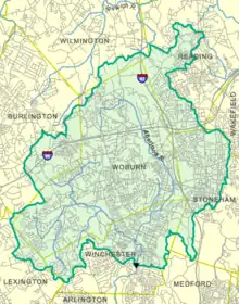 The Aberjona River is a 9.3-mile-long (15.0 km),[1] heavily urbanized river in the northwestern suburbs of Boston, Massachusetts. The name is from the Natick language and means "junction or confluence".[2]