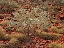 The bush can be heavily grazed by stock, especially as a seedling. Indigenous Australians used to find edible grubs from around the roots. It is often used in land rehabilitation as a primary colonizer.[3] It is commercially available in seed form for garden planting in dry environments.[1]
