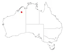 It is native to an area in the Kimberley region of Western Australia[1] where it has a limited range within the Wunaamin Miliwundi Ranges where it grows in sandy soils over a sandstone substrate.[2]