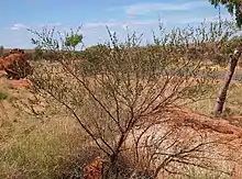 It occurs on red sand, ironstone or lateritic soils in pindan, and on stony plains and rocky ridges. In northern Western Australia it is found in the Central Kimberley, Central Ranges, Dampierland, Gibson Desert, Great Sandy Desert, Little Sandy Desert, Northern Kimberley, Ord Victoria Plain, Pilbara and Tanami IBRA bioregions.[1]