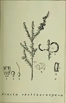 - 1 2 3 "Acacia rhetinocarpa". World Wide Wattle. Western Australian Herbarium. Retrieved 2 June 2019.