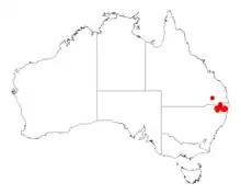 It is endemic to a large area where it has a scattered distribution extending from the south east of Queensland in the north around Wyberba down to around Torrington in New South Wales in the south where it is found on elevated tablelands growing in sandy granite based soils often as a part of open scrub or woodland communities.[3] In Queensland Acacia ruppii is treated as conspecific with A. torringtonensis.[5]