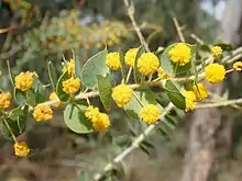 Acacia sertiformis foliage and inflorescences
