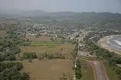 Acandí is a town in Colombia at the northern extremity of the department of Chocó in the northwest of Colombia, bordering Panama and the Caribbean Sea. It is 366 km (227 mi) from the department's capital, Quibdó. Its average temperature is 28 degrees Celsius (82 °F). It was founded around the year 1887, and it became a municipality in 1905, previously being part of Turbo. The name "Acandí" is a corruption of the indigenous word "Acanti", which means "River of Stone".