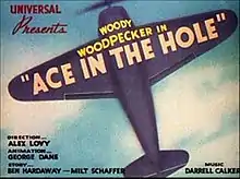 Ace in the Hole is the fifth animated cartoon short subject in the Woody Woodpecker series. Produced by Walter Lantz Productions and distributed by Universal Pictures, the short was released theatrically on June 22, 1942.[2] Like many other animation and film studios in the 1940s, Walter Lantz Productions through its iconic character, Woody Woodpecker, became part of the war effort.