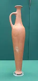 Such items reflect cultural and commercial connections of the settlement, as well as its chronology. These small bottles appear mainly in funerary contexts, and sometimes also in domestic and public contexts. Their shapes can be either of a long alabastron type, or of a globular type. These bottles were probably used as containers for medicinal oils or perfumes.[4]