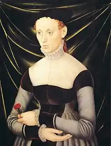 Lucas Cranach the Elder, Woman with a Carnation. Oil on panel. 16th century. Musee d'Art et d'Archeologie, Moulins, France. Sold by Boitel to Hermann Göring.[7]