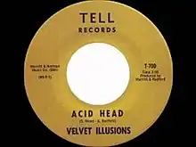 "Acid Head" is a song recorded by the American garage rock band the Velvet Illusions. It first appeared as the A-side to the group's debut single, which was released on Tell International Records in mid-1966. The writing of the composition is credited to keyboardist Steve Weed and the group's manager George Radford, however, it is reported that "Acid Head" actually originated from an outside composer. At the time of its first release, the tune suffered from limited radio-play time. Over time, "Acid Head" has since become recognized as a garage rock classic and is widely accessible on multiple compilation albums.