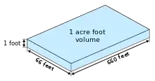 As a rule of thumb in US water management, one acre-foot is taken to be the planned annual water usage of a suburban family household.[lower-alpha 2] In some areas of the desert Southwest, where water conservation is followed and often enforced, a typical family uses only about 0.25 acre-foot of water per year.[3] One acre-foot/year is approximately 119 cu ft/d (3.38 m3/d).