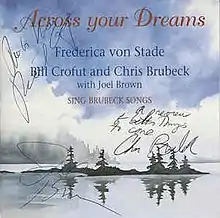 Across Your Dreams: Frederica von Stade Sings Brubeck is a studio crossover album. It exists in two versions. The first, released by Crofut Productions in 1995, is a 63-minute CD performed by von Stade with Edward Arron, Frank Brown, Joel Brown, Chris Brubeck, Dan Brubeck, Bill Crofut and Mark Vinci.[1] The second, released by Telarc in 1996, is a 58-minute CD performed by the same artists and von Stade's elder daughter, Jenny Elkus.[2]
