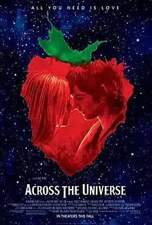 Across the Universe is a 2007 American jukebox musical romantic drama film directed by Julie Taymor, centered on songs by the Beatles. The script is based on an original story credited to Taymor, Dick Clement, and Ian La Frenais, and based on the song of the same name by Lennon–McCartney. It incorporates 34 compositions originally written by members of the Beatles. The film stars Evan Rachel Wood, Jim Sturgess, Joe Anderson and T.V. Carpio, and introduces Dana Fuchs and Martin Luther McCoy as actors. Cameo appearances are made by Bono, Eddie Izzard, Joe Cocker, and Salma Hayek, among others.