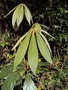 Actinodaphne bourdillonii is a species of the genus Actinodaphne of the flowering plant family Lauraceae, commonly called the malavirinji, eeyoli, and pisa. [2] It is endemic to the Southern Western Ghats (South Sahyadri and Palakkad Hills). Its general habitat is shola and montane evergreen forests from 600 to 2,000 metres elevation.[2][1]