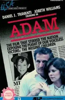 Adam is a 1983 American made-for-television film starring Daniel J. Travanti and JoBeth Williams. It aired on October 10, 1983, on NBC. On its original air date, it was seen by an audience of 38 million people.[1] It was rebroadcast on April 30, 1984, and it was rebroadcast again on April 29, 1985. At the end of each broadcast of the film, a series of missing children's photographs and descriptions were displayed on the screen for viewers, and a telephone number was also given for viewers to call if they had any information about them. The 1985 photograph series was introduced by President Ronald Reagan in a pre-recorded message, "...maybe your eyes can help bring them home."[2] A sequel, Adam: His Song Continues followed on September 29, 1986, also starring Travanti and Williams.