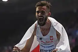 Adam Piotr Kszczot (pronounced [ˈadam ˈkʂt͡ʂɔt]; born 2 September 1989) is a retired Polish middle-distance runner who specialised in the 800 metres. His achievements include silver medals at the 2015 and 2017 World Championships in Athletics, gold at the 2018 World Indoor Championships as well as silver and bronze at the 2014 and 2010 World Indoor Championships respectively. Kszczot won three gold medals in the 800 m at both the European Outdoor and Indoor Championships. He twice competed at the Olympic Games, in 2012 and 2016, narrowly missing the final on both occasions.