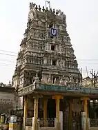 The temple is built in Dravidian architecture occupies around 1.5 acres (0.61 ha) and has two precincts. It is located in Sriperumbudur, a suburb in Chennai, the capital of the South Indian state of Tamil Nadu. It has features from Chola and Vijayanagara architecture. There are inscriptions from the Vijayanagara Empire dating back to 1572 from the rule of Sriranga I (1572–1586 CE). There is another inscription from the period of Aliya Rama Raya (1542–1565) during 1556 indicating gifts of 36 villages to the temple. The vimana (roof of the sanctum) was gold plated in 1912 and is earliest South Indian temple to have the feature. The plate has the image of Sriramanuja inscribed on it. There is a copper plate recording the history of the gold plate in the temple.[6] The temple has a rectangular plan surrounded by 10 ft (3.0 m) high walls, pierced by a seven-tier gopuram, the gateway tower. The presiding deity is housed in the sanctum and is an image made of granite seen in standing posture. The shrine of Garuda facing Adi Kesava, the vahana of Vishnu, is located axial to the central shrine. The central shrine is approached through a worship hall and a narrow Ardha mandapam. The flagpost is located behind the shrine of Garuda, axial to the central shrine and the gateway tower. There are images of Alvars in the worship hall on both sides and the shrine of Yathiraja Nadhavalli is located on in the second precinct. This is one of the temples where Lakshmi takes the name of a devotee.[6] The gold plated hall in front of the shrine of Ramanuja was endowed by the Maharaja of Mysore. There are no separate Sorgavasal, the sacred entrance way opened during the Vaikunta Ekadasi festival. There is a Bhoodakal hall where the festive images of the presiding deity and is consort are housed during the festival.[5] During 2017, a canal was dug from Sriperumbudur lake to the Madapalli (kitchen) of the temple. The temple tank, Narasimha Kulam was also revived during 2017.[7]