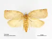 Adoxophyes fasciculana, the bell moth or orange tip moth, is a moth of the family Tortricidae.[1] It was described by Francis Walker in 1866 from the Moluccas. It is also known from South Asia, Vietnam, Australia and the Pacific Islands. It is a polyphagous pest on several commercially important crops.[2][3]