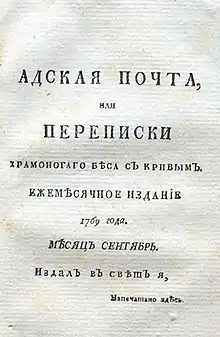 Adskaya Pochta (Russian: "Адская почта", which may be translated as Infernal Post)[1] was a Russian monthly magazine, established by Fyodor Emin in Saint Petersburg in 1769.