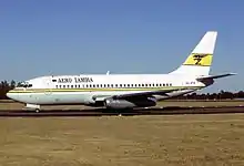 Aero Zambia was an airline based in Zambia. Aero Zambia replaced the bankrupt Zambia Airways and was admitted as a full member of IATA ( International Air Transport Association )on 11 April 1996. The airline employed 300 staff and flew from Lusaka to destinations such as Johannesburg, Ndola, Nairobi, Harare and Dar es Salaam.[1] They offered Business and Economy Classes. Aero Zambia operated two Boeing 737-200s, 9J-AFU and 9J-AFW which was a Combi version.[2]