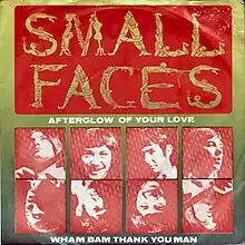In March 1969 the Small Faces officially broke up, with Steve Marriott going on to form Humble Pie with Peter Frampton and Greg Ridley. Their manager and proprietor of their record label Andrew Loog Oldham quickly released "Afterglow" as a final single without the group's permission. Now called "Afterglow of Your Love", this soulful power ballad appeared in a noticeably different, slightly sped-up mix from the version that originally appeared on Ogdens, removing the song's acoustic introduction and adding a longer instrumental coda. It was coupled with a contrasting hard rock number on the B-side, which was mis-titled on both cover and label as "Wham Bam Thank You Man" (the song's actual title is "Wham Bam Thank You Mam" - or, even more correctly - "Ma'am"). To this day, some of the less well-researched Small Faces reissues still carry this incorrect title for the song. One of the final few tracks the Small Faces completed in late 1968, the hard-rocking sound of "Wham Bam Thank You Ma'am" strongly indicated the musical direction Marriott would continue to pursue with Humble Pie. Several "Best of" compilations contain a different, slower version of the song. There is also a live version. Three years later, David Bowie borrowed the title of the track for a line called out at the climax of his rock high-life anthem Suffragette City.