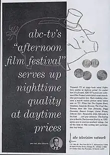 ![]() 1956 Trade Advertisement for ABC's Afternoon Film Festival. | |