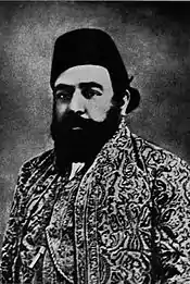 He is descended from the Fatimid caliphs of Egypt.[3] He spent his early years in Mahallat; however, his father's attempts to regain his former position as governor of Kirman made residence there difficult, and so Aqa Ali Shah was taken to Iraq with his mother in 1840. There he studied Arabic, Persian, and Nizari Ismaili doctrine,[1] and soon gained a reputation as an authority on Persian and Arabic literature, as a student of metaphysics, and as an exponent of religious philosophy.[2] In the late 1840s, changed political circumstances allowed Aqa Ali Shah to return to Persia where he took over some of his father's responsibilities.[4] In 1853, Sarv-i Jahan Khanum and Aqa Ali Shah joined Aga Khan I in Bombay. As his father's heir apparent to the Ismaili Imamat, Aqa Ali Shah frequently visited various Ismaili communities in South Asia, particularly those in Sind and Kathiawar.[1]