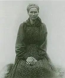 Agrafena Kryukova was born as Agrafena Kozhina in Chavanga, a Pomor village on the Tersky Coast, in the south of the Kola Peninsula.[1] She learned bylinas from her mother and her uncle, and subsequently from her father-in-law, but she remained illiterate. Agrafena Kryukova was married to a fisherman at the age of 18 and moved to the village of Nizhnyaya Zolotitsa, on the other side of the White Sea, currently in Arkhangelsk Oblast.