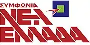 Agreement for the New Greece (Greek: Συμφωνία για τη Νέα Ελλάδα) is a social-democratic political party in Greece, established on 15 April 2013. It was formed by former Panhellenic Socialist Movement (PASOK) health minister Andreas Loverdos and former members of Radical Movement of Social Democratic Alliance (RIKSSY).[1] It was also supported by Christos Aidonis, an independent MP (former member of PASOK) and Dimitris Tsironis (ex-MP for Arta). The party supports the idea of the Fourth Hellenic Republic.