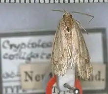 - ↑ Edward Meyrick (1922). "Lepidoptera Heterocera. Fam. Oecophoridae". Genera Insectorum. 180: 59. Wikidata Q112113257.